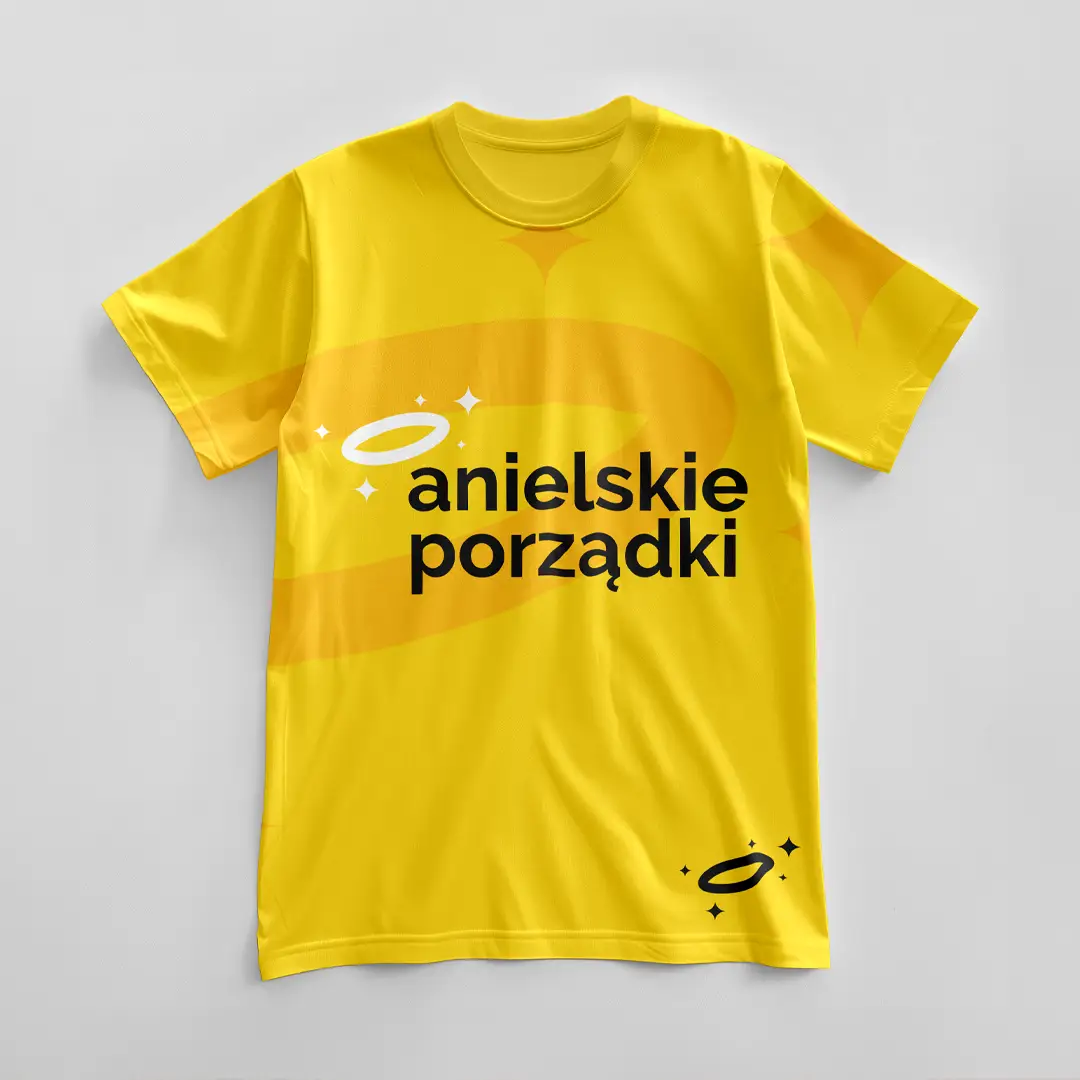 Zrezygnowaliśmy z oczywistych, smutnych symboli. Zamiast nich, tuż nad literą "a", umieściliśmy złotą aureolę z subtelnymi gwiazdkami. A to oznacza, że klient podświadomie odczuwa spokój i bezpieczeństwo. Jasny, żółty kolor przełamuje powagę sytuacji. Daje sygnał, że usługa zostanie wykonana z prawdziwie "anielską" starannością, ale bez niepotrzebnego patosu.
